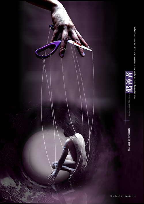 메타포로서 꼭두각시를 보임으로 위선행위에 대한 자각심과 흑과 백의 그레이 스케일로 선과