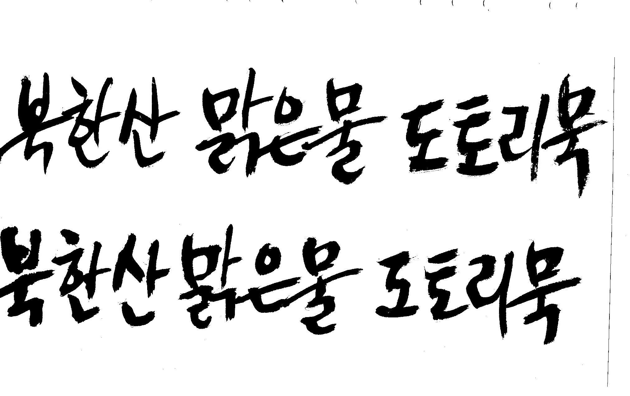 안녕하세요~캘리 좀 부탁드릴께요~ 김철호 일반 1 8795 2008.12.12 09:43 > > > > > 반갑습니다. ^^ > > 캘리 좀 부탁드려도 될까요~ > > 북한산 맑은물 도토리묵 > > 감사합니다. ^^ > > > 유용하게 쓰세요.. >