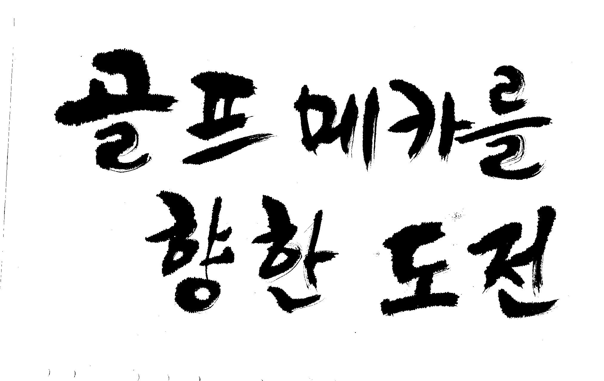 우경의 행복한 캘리세상-골프메카 김철호 일반 1 8892 2009.07.18 10:27 > > > > > 리듬감을 최대한 살리고 ㅡ 스포츠의 운동감과 밝음 > > 기교섞인 획을 배제--일반적인 느낌 > > 굵기변화를 통하여 도전 낱말을 강조 > > 스타일은 비슷하지만 ...한 사람이 썼으니까 ㅎㅎㅎ > > 서로 다른 글꼴을 올린 것은... 비교하여 보시고... > > 편집자에게 선택권을 주는 것입니다 > > >